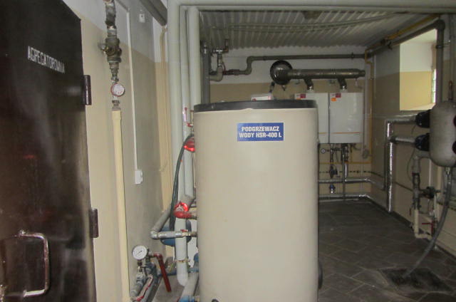 1 – kondygnacyjny, niepodpiwniczony, wybudowany w   technologii tradycyjnej w  1991 r., wyposażony w instalacje: wodno-kanalizacyjną, elektryczną, c.o. i  wentylacji grawitacyjnej. W budynku znajdują się pomieszczenia kotłowni z  dwoma piecami gazowymi dwufunkcyjnymi REMEHA oraz dwoma zbiornikami do ciepłej wody użytkowej o  pojemności 400 l każdy, pomieszczenia z  agregatem prądotwórczym oraz pomieszczenia magazynowe