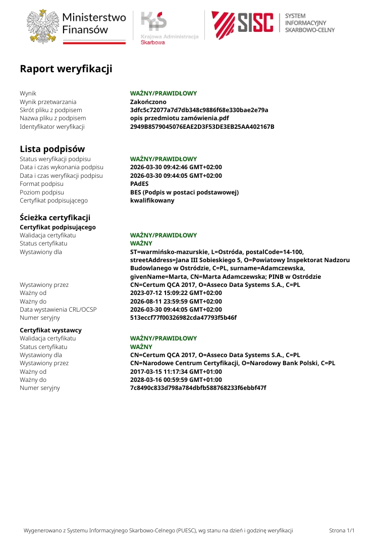 Zapytanie ofertowe: Zakup i dostawa fabrycznie nowego samochodu osobowego wraz z pakietem serwisowym obejmującym co najmniej 4 przeglądy oraz z pakietem ubezpieczeniowym (OC, AC, NW, Assistance) na okres 12 miesięcy, na potrzeby Powiatowego Inspektoratu Nadzoru Budowlanego w Ostródzie